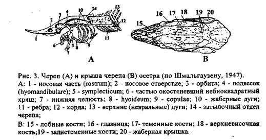 У остальных позвоночных еще на личиночной или зародышевой стадии разросшийся хрящ образует и крышу черепа. Такой, полностью хрящевой череп, у хрящевых рыб - акул и скатов (рис. 2).