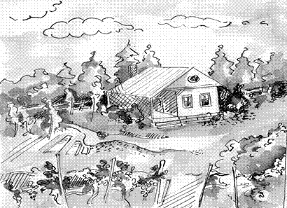 Дом и сад. В саду дорожки, А вокруг цветы.