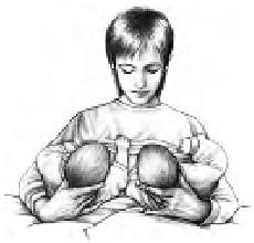 Смешанное удержание. Возьмите одного ребенка убаюкивающим приемом, а другого удержанием захватом. Голова ребенка, взятого захватом, окажется на одном уровне с попкой или ногами ребенка, взятого убаюкивающим приемом.