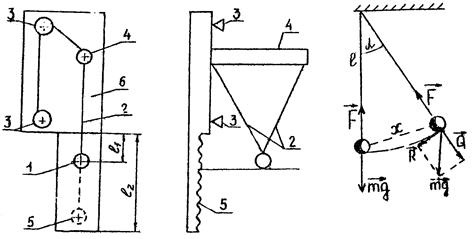 Установка представляет собой тело 1, подвешенное на двух нерастяжимых нитях 2. Нить перекинута через барабан 3 и кронштейн 4. Два барабана и кронштейн смонтированы на деревянной планке 6 (рис. 5.1, 5.2).