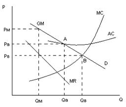 В условиях чистой монополии низкие средние издержки (за счет масштаба производства). АСм значительно ниже АСс (на конкур. рынке) Фактически, фирма –чистый монополист имеет средние издержки не в точке А, а в точке АСх.