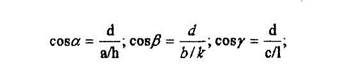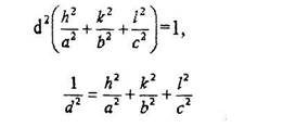 Т.к. через начало координат "О" также проходит плоскость семейства, то перпендикуляр из начала координат на плоскость (hkl) и будет dhki-Заданная плоскость отсекает следующие координатные отрезки: a/h> b/k, с/1. Тогда направляющие косинусы нормали