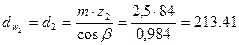 Диаметры окружностей вершин зубьев шестерни и колеса