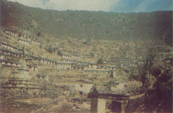 В ожидании неприбывших грузов Эдик Мысловский и Коля Чёрный остаются в Лукле, а мы втроём (А. Г. Овчинников, Володя Балыбердин и я) уходим с первым караваном. С нами идёт и прилетевший сегодня офицер связи. Пемба объясняет нам, что караван сегодня будет идти два‑три часа и остановится у большого моста через ущелье. Прощаемся с ним и уходим вперёд. Идётся очень легко: рюкзаки у нас килограммов по двадцать, дорога хорошая. Вскоре обгоняем наш караван. Дорога то круто взбирается вверх, то резко спускается к мостику, переброшенному через очередную речку, вытекающую из бокового ущелья. Панорама быстро меняется. Ущелье сужается, и видно, что вскоре раздваивается. За разговорами незаметно достигаем большого моста. Решаем двигаться дальше. Примерно через полчаса на небольшой поляне на берегу реки Дуд‑Коси останавливаемся на ночлег. Понимаем уже, что караван заночевал ниже. Мы остались без палатки. Бэл вызвался сходить к каравану. Мы собираем хворост для костра. Возвращается Бэл с носильщиком. Они принесли палатку и продукты. Засыпаем под мерный гул реки. 11 марта. Проснулись рано. Напились чаю без сахара (сахар в большом караване), немного поели и двинулись в путь. Через час подошли к контрольному пункту национального парка “Сагарматха” (это непальское название Эвереста). Анатолий Георгиевич платит за вход по 60 рупий с человека. Вскоре мы оказываемся перед мостом. Отсюда серпантинами, круто вверх, часа два ходьбы до Намче‑Базара. Солнце припекает. Нам навстречу, спускаясь к Лукле, движутся навьюченные яки, туристы. Наш путь – вверх. То и дело обгоняем группы по три – пять человек. Туристы недоумённо разглядывают нашу одежду. На нас лишь шорты и солнцезащитные кепочки. Идём мы быстро. Серпантины чередуются один за другим. Круто набираем высоту. В какой‑то момент мелькает верхушка Эвереста (выше 8600, остальная часть горы закрыта гребнем Лхоцзе). Мысленно я назвал это место “улыбкой Эвереста”. Отдыхаем, любуемся нашей вершиной и идём дальше. А вот и Намче‑Базар. В посёлке около 700 жителей. Дома стоят на террасах, вырубленных на крутых склонах. Улицы и огороды – плоды тяжёлого труда многих поколений шерпов. Здесь есть школа, почта, музей. Мы с Бэлом поднялись выше Намче‑Базара и остановились, ожидая Анатолия Георгиевича Овчинникова. Расположились позагорать. Вскоре выяснилось, что караван наш остановился на ночлег в Намче‑Базаре. Пришлось и нам спускаться вниз. Караван разгружается у дома бабушки Пембы Норбу. Солнце припекает. Нам навстречу, спускаясь к Лукле, движутся навьюченные яки, туристы. Наш путь – вверх. То и дело обгоняем группы по три – пять человек. Туристы недоумённо разглядывают нашу одежду. На нас лишь шорты и солнцезащитные кепочки. Идём мы быстро. Серпантины чередуются один за другим. Круто набираем высоту. В какой‑то момент мелькает верхушка Эвереста (выше 8600, остальная часть горы закрыта гребнем Лхоцзе). Мысленно я назвал это место “улыбкой Эвереста”. Отдыхаем, любуемся нашей вершиной и идём дальше. А вот и Намче‑Базар. В посёлке около 700 жителей. Дома стоят на террасах, вырубленных на крутых склонах. Улицы и огороды – плоды тяжёлого труда многих поколений шерпов. Здесь есть школа, почта, музей. Мы с Бэлом поднялись выше Намче‑Базара и остановились, ожидая Анатолия Георгиевича Овчинникова. Расположились позагорать. Вскор
