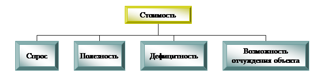 Стоимость недвижимости возникает при наличии спроса, полезности, дефицитности и возможности отчуждения конкретного объекта недвижимости. Спрос – определяет количество данного товара или услуг, находящихся на рынке платёжеспособных покупателей.