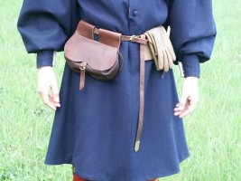 Неотъемлемая часть гардероба средневекового человека. На пояс вешались сумочка, кошельки-мешочки, столовые ножи, кинжалы с ножнами, ключи от дома и прочее. Пояс обычно состоял из пряжки, кожаной полосы, различных подвесов и "хлыстовика" (металлического окончания). Формы пряжек и хлыстовиков менялись на протяжении 14 века. Сумка поясная (purse)