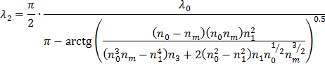 При выполнения условия, коэффициент отражения обращается в нуль на длине волны λ= 2.