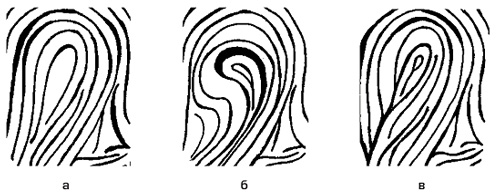 Папиллярлық өрнектердің жекелеген белгілері 1 – сызықтың бастауы; 2 – терідегі саңылаулар; 3 – сызықтардың айырылысуы; 4 – иіні; 5 – көпірше; 6 – қарсы сызық; 7 – көзше; 8 – сызықтардың қосылуы; 9 – папилляр арасындағы сызықтар (айдарлар) 10 – қысқа сызық; 11 – сызықтың аяқталуы; 12 – ілмек; 13 – аралшық; 14 – сызықтың үзілуі; 15 – сызықтың жуандауы