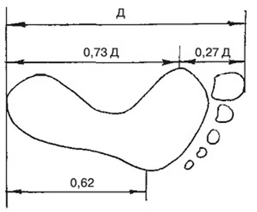 Табанның және оның бөлшектерінің орта типтік байланысы (Д – табанның ұзындығы)