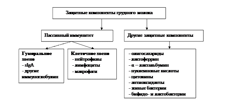 Рациональное вскармливание детей грудного возраста является залогом их адекватного роста и развития, а также высокого качества жизни, как в раннем детском возрасте, так и в последующие годы. Оптимальным продуктом питания для ребенка первых месяцев жизни является материнское молоко, соответствующее особенностям его пищеварительной системы и обмена веществ, обеспечивающее адекватное развитие детского организма при рациональном питании кормящей женщины. Все нутриенты женского молока легко усваиваются, поскольку их состав и соотношение соответствуют функциональным возможностям желудочно-кишечного тракта грудного ребенка, а также благодаря наличию в женском молоке ферментов (амилаза, диастаза, липаза, глюкозо-6-фосфатдегидрогеназа, фосфатазы, протеазы и др.) и транспортных белков. Грудное молоко является источником гормонов и различных факторов роста (лептин, грелин, эпидермальный и инсулиноподобный факторы роста и др.), которые играют важнейшую роль в регуляции аппетита, метаболизма, роста и дифференцировки тканей и органов ребенка. За счет присутствия антител, иммунных комплексов, активных лейкоцитов, лизоцима, макрофагов, секреторного иммуноглобулина А, лактоферрина и других биологически активных веществ грудное молоко способствует повышению защитных функций детского организма (табл. 14). Поэтому дети, находящиеся на естественном вскармливании, значительно реже болеют инфекционными заболеваниями, развивают более стойкий поствакцинальный иммунитет.