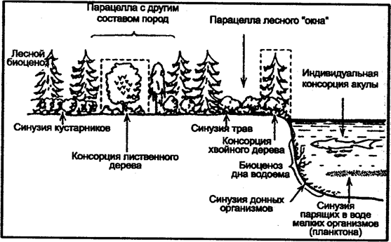 Рис. 11.8. Консорция, синузия и парацелла (по Н. Ф. Реймерсу, 1990)