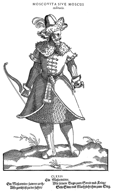 «Московит в военном наряде», гравюра из книги Сигизмунда Герберштейна «Записки о Московии» (изд. 1556 г.)