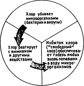Хлор — наиболее эффективное средство для обеззараживания воды. Он убивает микроорганизмы и вступает в реакцию с аммиаком. Оставшийся в избытке хлор растворяется в воде, защищая тем самым воду от любого нового источника загрязнения. Физико-химический метод очистки дает возможность уменьшить количество нерастворенных загрязняющих веществ сточных вод до 95% и растворенных до 25%. Загрязненные сточные воды очищают также электролитическим методом (пропусканием электрического тока через загрязненные воды), с помощью ультразвука, озона, ионообменных смол и высокого давления. Механический и физико-химический методы являются первыми этапами очистки сточных вод, после чего они направляются на биологическую очистку. Метод биологической очистки заключается в минерализации органических загрязнений сточных вод при помощи аэробных биохимических процессов. После биологической очистки вода становится прозрачной, незагнивающей, содержащей растворенный кислород и нитраты. Есть несколько типов биологических устройств по очистке сточных вод: биофильтры, аэротенки и биологические пруды. В биофильтрах сточные воды пропускаются через слой крупнозернистого материала, покрытого тонкой бактериальной пленкой. Эта пленка является действующим началом в биофильтрах. Благодаря ей интенсивно протекают процессы биохимического окисления. Аэротенки — это железобетонные резервуары, обычно больших размеров, через которые медленно протекают подвергающиеся аэрации сточные воды, смешанные с активным илом (рис. 15.12).