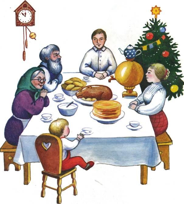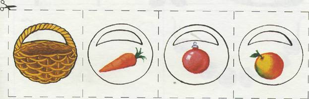 Игра «Длинный — короткий» Чему учится ребенок: различать величину предметов; правильно ее называть (длинный, короткий); согласовывать имена существительные с прилагательными в роде и числе. Оснащение: сюжетная и предметные картинки (см. вклейку, рис. 9). Ход игры: покажите ребенку сюжетную картинку. Предложите ему помочь Снегурочке нарядить две новогодние елки (высокую и низкую). Рассмотрите вместе предметные картинки с изображением елочных украшений. Попросите малыша назвать их. Предложите ему определить величину каждого предмета и назвать ее (длинные бусы — короткие бусы, длинная цепочка — короткая цепочка, длинная гирлянда — короткая гирлянда). Предложите малышу помочь Снегурочке — провести линию цветным карандашом от длинных елочных украшений к высокой елке, а от коротких елочных украшений — к низенькой елочке. Игра «Что в мешке!» Чему учится ребенок: употреблять в речи имена существительные с предлогом «в»; соотносить числительное «один» и наречие «много» с количеством предметов. Оснащение: игрушечный еж; красиво украшенный мешочек с подарками. Ход игры: положите мешочек с новогодними подарками на спинку ежа. Возьмите игрушку и «ведите» ее по столу (или полу). Имитируйте мелкие шаги ежика (постукивайте игрушкой по столу или попу в быстром ритме). Можно сопровождать действия проговари-ванием звукоподражаний: «Уф-уф-уф». Прочтите рифмовку: Еж колючий шел по лесу, Нес мешочек с интересом. Инте-, инте-, интерес, Кто в мешочек тот залез? Предложите ребенку вытащить из мешочка все находящиеся в нем предметы. Попросите его разложить их на столе (или полу) и назвать каждый предмет. Попросите ребенка помочь ежику сложить (обратно) в мешочек новые подарки. Поиграйте с ребенком в игру «Угадайка» при помощи «Волшебного мешочка». Положите на столе перед ребенком два предмета-подарка. Например, конфету и бантик (для любимой сестры). Попросите малыша закрыть глаза. В это время спрячьте в мешочек один из предметов. Попросите ребенка открыть глаза и внимательно посмотреть на оставшийся предмет. Предложите ему вспомнить и сказать, что вы спрятали в мешочек. Предоставьте ребенку возможность проверить правильность своего ответа: заглянуть; в мешочек, вытащить из него спрятанный предмет, назвать его и сказать, где он находился. 1 (В мешочке.) Игру можно начать с двух предметов, постепенно увеличивая количество спрятанных, в мешке игрушек до пяти. Игра «Накрываем праздничный стол» Чему учится ребенок: употреблять в речи имена существительные с предлогами: Оснащение; сюжетная и предметные картинки (см. вклейку, рис. 10). Ход игры: заранее подготовьтесь к игре. Вырежьте нарисованные торт, конфеты, яблоки, апельсины. Положите их перед ребенком. Предложите ему назвать каждый предмет.;