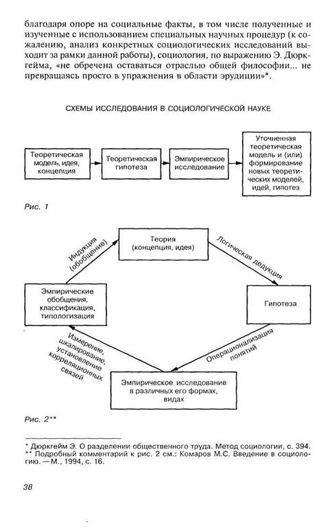 организация _ органическое единство, взаимодействие теоре-и?^1|?Л ГИ СК тических и эмпирических методов. Данное един- НАУКИ ство, в котором эмпирическое является средством обоснования теоретических идей, — идеальная модель социологии как науки в целом. Но в социологической практике в зависимости от отрасли социологической науки, конкретных задач, решаемых в данном исследовании, и индивидуальных склонностей самого исследователя, характера его профессиональной подготовки пропорции между теоретическими и эмпирическими началами могут быть различными. Эти пропорции служат основанием для одной из наиболее популярных (в том числе и в нашей стране) классификаций социологического знания по его уровням (в основе этой классификации в определенной степени воспроизводятся (но не совсем точно) идеи Р. Мертона): 1) в одних случаях эмпирия превалирует, а теоретические идеи 2) в других случаях, опираясь на различные конкретно-социо Для всех социологических теорий среднего уровня характерны: а) широкая опора на эмпирическую базу по соответствующей б) теоретическое описание изучаемой социальной подсистемы в) описание теоретической модели изучаемой подсистемы в г) теории среднего уровня являются теоретической базой соответствующих социологических исследований. Трудно себе представить автора эмпирических исследований рекламы (например, эффективности рекламы шоколадных батончиков «Сникерс»), не ориентирующегося на положения социологии рекламы при подготовке этих исследований. Таким образом, в социологических теориях среднего уровня устанавливается эффективное взаимодействие теоретических и эмпирических методов. Они тесно связаны как с конкретно-социологическими исследованиями, так и со всеохватывающими теоретическими конструкциями; 3) всеохватывающие теоретические конструкции образуют высший уровень социологического знания — общесоциологические теории, исследующие общество как единую систему, взаимодействие ее основных элементов, основы функционирования и развития общества как социального организма. Особое значение этих теорий в том, что они определяют: а) общий подход исследователя-социолога к изучению и ос б) направленность научного поиска; в) интерпретацию эмпирических фактов. Иными словами, общесоциологические теории пронизывают единым теоретическим видением как эмпирическое исследование, так и анализ социальных явлений на уровне теории среднего уровня. Это достигается благодаря тому, что именно в рамках общесоциологических доктрин описывается теоретическая модель общественной жизни как целостности. В современной социологии существуют несколько доктрин, теорий, пытающихся дать целостное описание социальной жизни, но нередко с принципиально разных позиций (о них будет рассказано в следующей главе). Единство теории и эмпирии в общесоциологических теориях носит сложный и преимущественно опосредованный характер. Речь идет прежде всего о широком использовании этими теориями основных выводов, полученных в том числе в теориях среднего уровня, которые, в свою очередь, базируются на широкой эмпирической основе. * * * Говоря о внутренней организации социологического знания, выделим прикладные и фундаментальные исследования, цели которых различны. Как правило, цель прикладных исследований — дать конкретное з