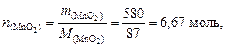 из которого следует, что 3 моль MnO2 дают 1 моль кислорода. Найдем количество вещества MnO2