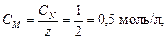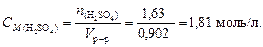 5. По формуле (36) вычислим молярную концентрацию раствора серной кислоты: