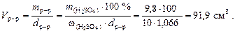 2. Подставим найденную массу серной кислоты в уравнение (34) и вычислим объем 10 % раствора