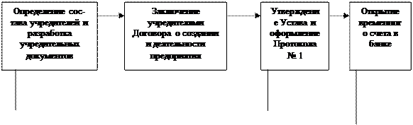 Прежде чем осуществится I этап необходимо предприятие создать. В соответствии с российским законодательством после принятия решения о создании нового предприятия предстоит пройти ряд обязательных этапов. Порядок прохождения этих этапов зависит от организационно-правовой формы предприятия. Наиболее типовой порядок создания нового предприятия можно проследить на рис. 1.6.