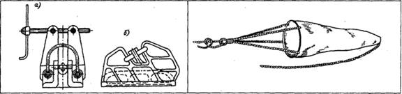 Рис. 34 Стопор якорного устройства. а — винтовой; Рис.35.Плавучий якорь б — с заклад. палом Стопор якорного устройства - приспособление, удерживающее якорную цепь за одно из звеньев и передающее натяжение цепи на корпус судна(рис. 34). Как правило, приваривается к палубе. Состоит из отливки с желобом, соответствующим форме и размеру звеньев якорной цепи и фиксирующего элемента в виде винтового зажима или штыря. Могут использоваться цепные стопора, когда один конец такелажной цепи крепится к палубе судна, а другой имеет захватывающее якорь-цепь устройство, Цепной ящик - объем для хранения якорной цепи (каната) в походном положении. Может иметь различную форму, в зависимости от проекта судна, крепится, как правило, к набору. Плавучий якорь (рис. 35) - приспособление для замедления дрейфа судна в штормовых условиях. Изготовляется из парусины в виде конуса, от вершины вдоль конуса прошиваются концы, которые соединяются в общий огон. Спущенный за борт плавучий якорь удерживает судно носом или кормой к ветру (в зависимости от места спуска). Для упрощения процесса выборки к вершине конуса может закрепляться отдельный трос. Date: 2015-09-24; view: 688; Нарушение авторских прав |