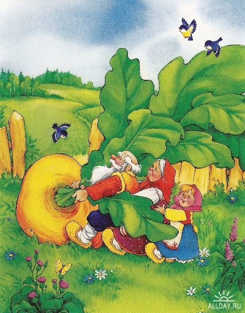 Иллюстрации к сказке «Репка» в современном изложении.