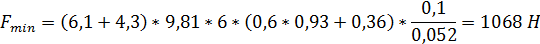 5 Усилие в тяговом органе. Минимальное натяжение цепи определяем из условия из устойчивости скребка при ϴ=30 и tск=6t