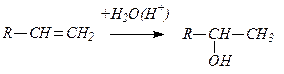 4. Присоединение воды и серной кислоты. В присутствии кислот вода присоединяется по двойной связи в соответствии с правилом Марковникова: