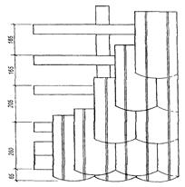 | Рис.9.5. Схема укладки ленточной черепицы при устройстве двухслойной кровли типа «Бобровый хвост»