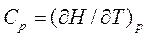 где Из уравнения видно, что для определения теплового эффекта реакции при температуре Т, необходимо знать его величину при другой температуре, например, при 298К, и зависимость теплоемкостей реагентов и продуктов реакции в температурном интервале от 298К до Т. Теплоемкость вещества - это физическая величина, характеризующая способность вещества увеличивать свою температуру при нагреве. Теплоемкость вещества при постоянном давлении (Ср) выражается отношением энтальпии к температуре (дифференциальное уравнение Кирхгофа):