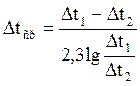 При расчете площади поверхности теплообмена в установках для нагрева жидкого топлива пользуются среднелогарифмической разностью температур, которая вычисляется по формуле: