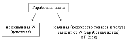 Заработная плата ¾ цена за труд, предоставляемый человеком с целью реализации его деловой активности. Все наемные работники получают заработную плату. На практике заработная плата может принять форму премий, гонораров, вознаграждений. Величина заработной платы зависит от ставки заработной платы ¾ цены, выплачиваемой за единицу времени (час, день, неделя). Необходимо видеть различие между денежной, или номинальной, и реальной заработной платой. Номинальная заработная плата ¾ сумма денег, получаемая за час, день, неделю и т. д., т. е. это то, что мы получаем «в кассе». Реальная заработная плата ¾ количество товаров и услуг, которые можно приобрести на номинальную заработную плату, т. е. это «покупательная способность» номинальной заработной платы. Реальная заработная плата зависит: 1) от номинальной заработной платы и 2) цен на товары и услуги (см. схему 19.1). Изменение реальной заработной платы в процентном отношении можно определить как разницу между процентным изменением в номинальной заработной плате и процентным изменением в уровне цен. Так, повышение номинальной заработной платы на 8% при росте уровня цен на 5% дает прирост реальной заработной платы на 3%. Однако номинальная и реальная заработная плата не обязательно изменяются в одном и том же направлении. Например, номинальная заработная плата может повыситься, а реальная заработная плата в то же самое время ¾ понизиться, если цены на товары возрастают быстрее, чем номинальная заработная плата.