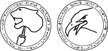 В Г Рис. 9 (А-Г). Медальоны с символами, которые носят члены Совета. Символы даны у уменьшенном виде. Размеры и цвет медальонов могутбыть разными, но они почти всегда имеют круглую форму и висят у Старейших на шее всех медальонов по краю имеется ободок, на котором выгравирована надпись которую душа обычно не может разобрать.