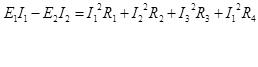 В левой части равенства слагаемое берется со знаком "+" если Е и I совпадают по направлению и со знаком "-" если не совпадают. Если направления ЭДС и тока I в источнике противоположны, то физически это означает, что данный источник работает в режиме потребителя. Например:
