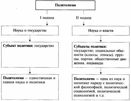 Дискуссия о предмете современной политической науки не завершена до сих пор. Отсутствие единого понимания обусловлено различиями национального политического опыта, который формировал традиции исследования политики в развитых странах. Наибольшее влияние на формирование современного облика политической науки оказали европейская и англо-американская школы. Европейская традиция несет на себе влияние традиционных направлений развития общественной мысли: философского, юридического, исторического. Своими корнями европейская политологическая школа уходит в государствоведение, поэтому политология сконцентрировала свое внимание на изучении государства, других политических институтов, осуществляющих властные функции. В связи с этим внутри европейской политической науки обозначились два направления в трактовке предмета политологии: сторонники одного из них понимали ее предмет достаточно узко, другого — значительно шире. Последователи традиционных методов анализа отождествляли политологию с наукой о государстве. Эта традиция была заложена еще Аристотелем. Представители другого направления трактовали политологию как науку о власти (кратология). Рис. 4.1. Подходы к определению предмета политологии