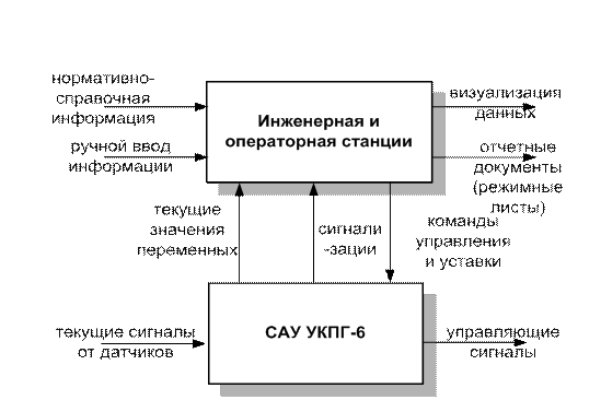 Информационная модель АСУ ТП УКПГ-6 строится на основе данных получаемых системой от внешних источников информации и формируемых самой системой, в соответствие с заложенными алгоритмами и установленным программным обеспечением. К источникам внешних данных относятся: - контрольно-измерительные приборы и исполнительные механизмы, сигнализирующие системе о состоянии технологического процесса; - данные, вводимые вручную оперативно-технологическим персоналом с клавиатуры автоматизированных рабочих мест (АРМов). Внутренними данными, формируемыми самой системой, являются: - диагностическая информация состояния каналов ввода/вывода и оборудования АСУТП УКПГ-6; - расчетные интегральные и усредненные значения переменных технологического процесса; - предупредительные и предаварийные сигнализации; - системные события; - отчетные документы. В системе организуется ведение трех типов баз данных: реального времени, исторической и архивной базы данных. База данных реального времени имеет две образующие составляющие: оперативная информация и нормативно-справочная информация. Основным источником оперативной информации являются датчики и исполнительные механизмы, определяющие, соответственно, текущие значения технологических параметров и состояние исполнительных механизмов. Контроллеры осуществляют обработку принимаемой информации: контроль достоверности, приведение к шкале измерения, и тем самым формируют оперативную составляющую базы данных реального времени. На основе получаемой от датчиков информации, либо по командам оператора контроллеры, в соответствии с заложенными алгоритмами, осуществляют управление исполнительными механизмами. Нормативно-справочная информация включает в себя: настройки системы управления, параметры алгоритмов управления, верхние и нижние пределы измерения, шкалы параметров в физических величинах, адреса каналов модулей ввода-вывода, различные настроечные коэффициенты. Также, нормативно-справочная информация включает в себя информацию, описывающую статику и динамику мнемосхем, конфигурацию исторической базы данных, наборы трендов, конфигурацию АРМов. Сформированная база данных реального времени используется для дальнейшей отработки, заключающейся в формировании исторической базы данных, отчетных документов, оперативном отображении информации на мнемосхемах и трендах. Информация, хранящаяся в исторической базе данных, используется для реализации следующих функций, возлагаемых на систему управления: воссоздания хронологии событий, происходивших в системе; предоставления информации для визуализации в виде исторических трендов на рабочих станциях; предоставления данных для формирования отчетных документов. В процессе работы АСУ ТП УКПГ-6, периодически создаются резервные копии базы данных, формируется архив. Архивная база данных включает в себя резервные копии конфигурационной информации (конфигурация контроллеров, АРМов) и исторические данные, накопленные за определенный период времени и перенесенные на средства долговременного хранения информации (гибкие или жесткие магнитные накопители, накопители на компакт дисках). АСУ ТП УКПГ-6 строится как система централизованного контроля и управления, обладающая двухуровневой структурой управления технологическими процес