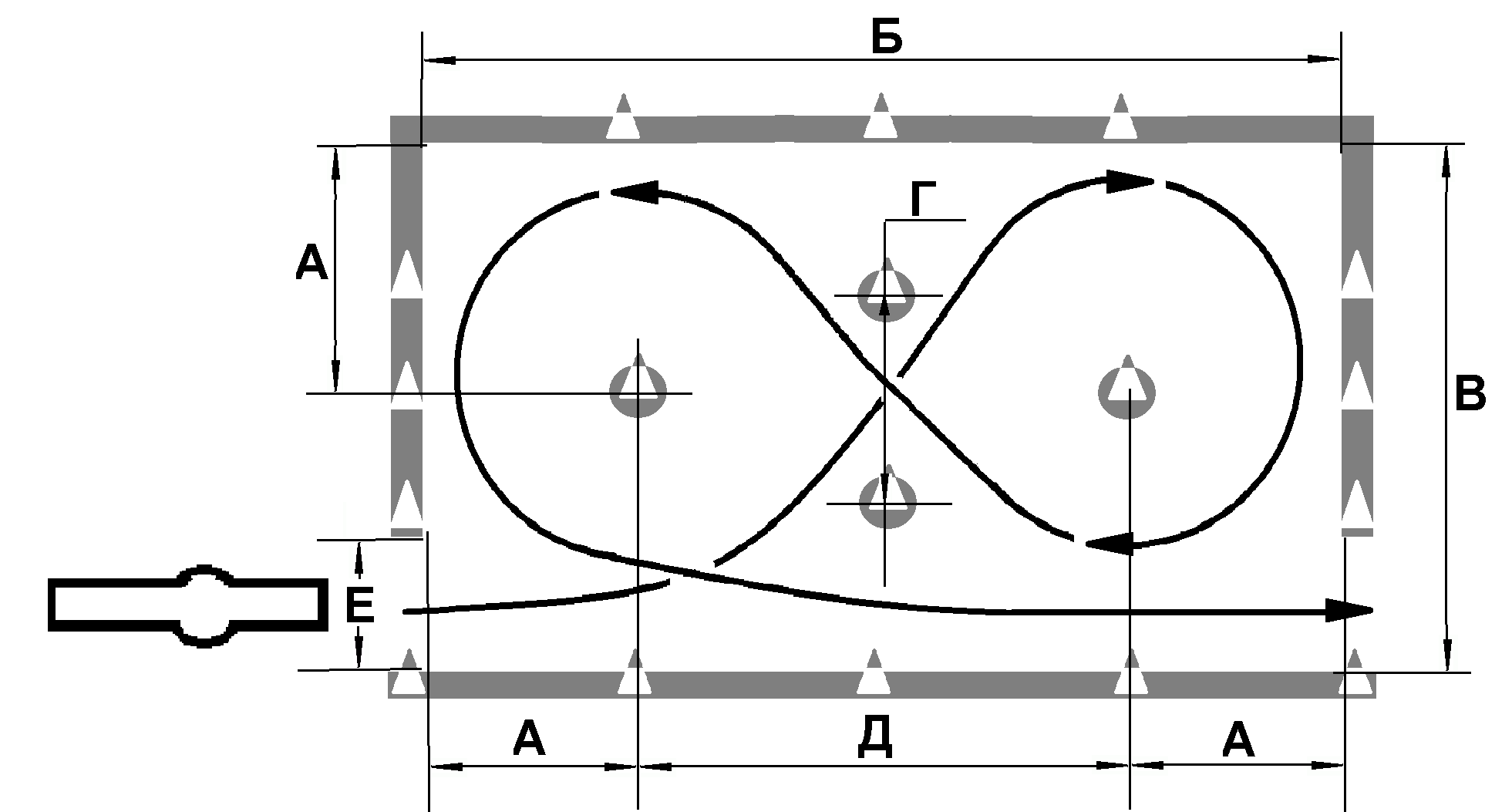 Рис. 2. Схема и основные размеры. Испытательное упражнение № 3 «Змейка»