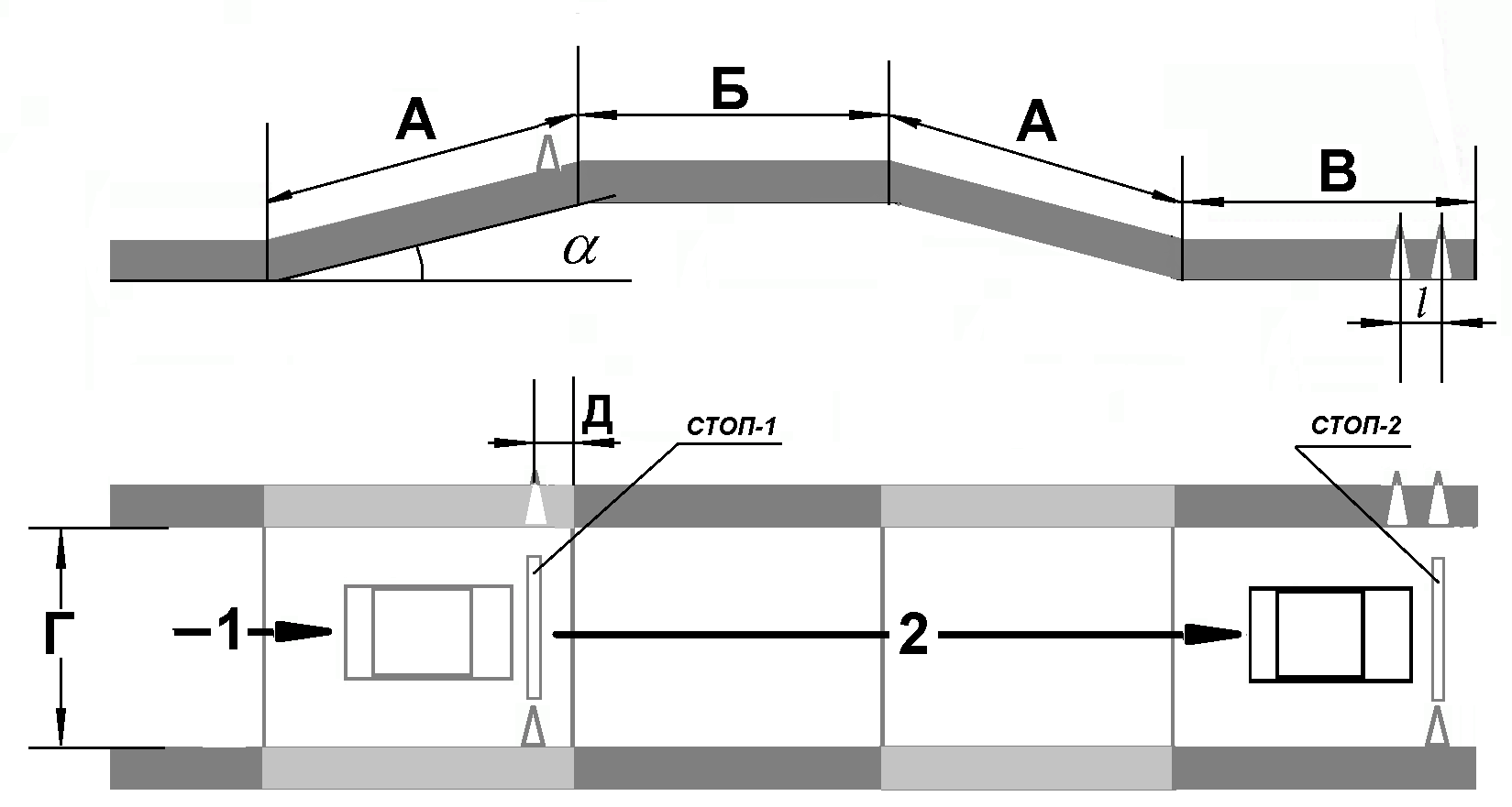 Рис.7. Схема и основные размеры Комплекс испытательных упражнений «Маневрирование в ограниченном пространстве»