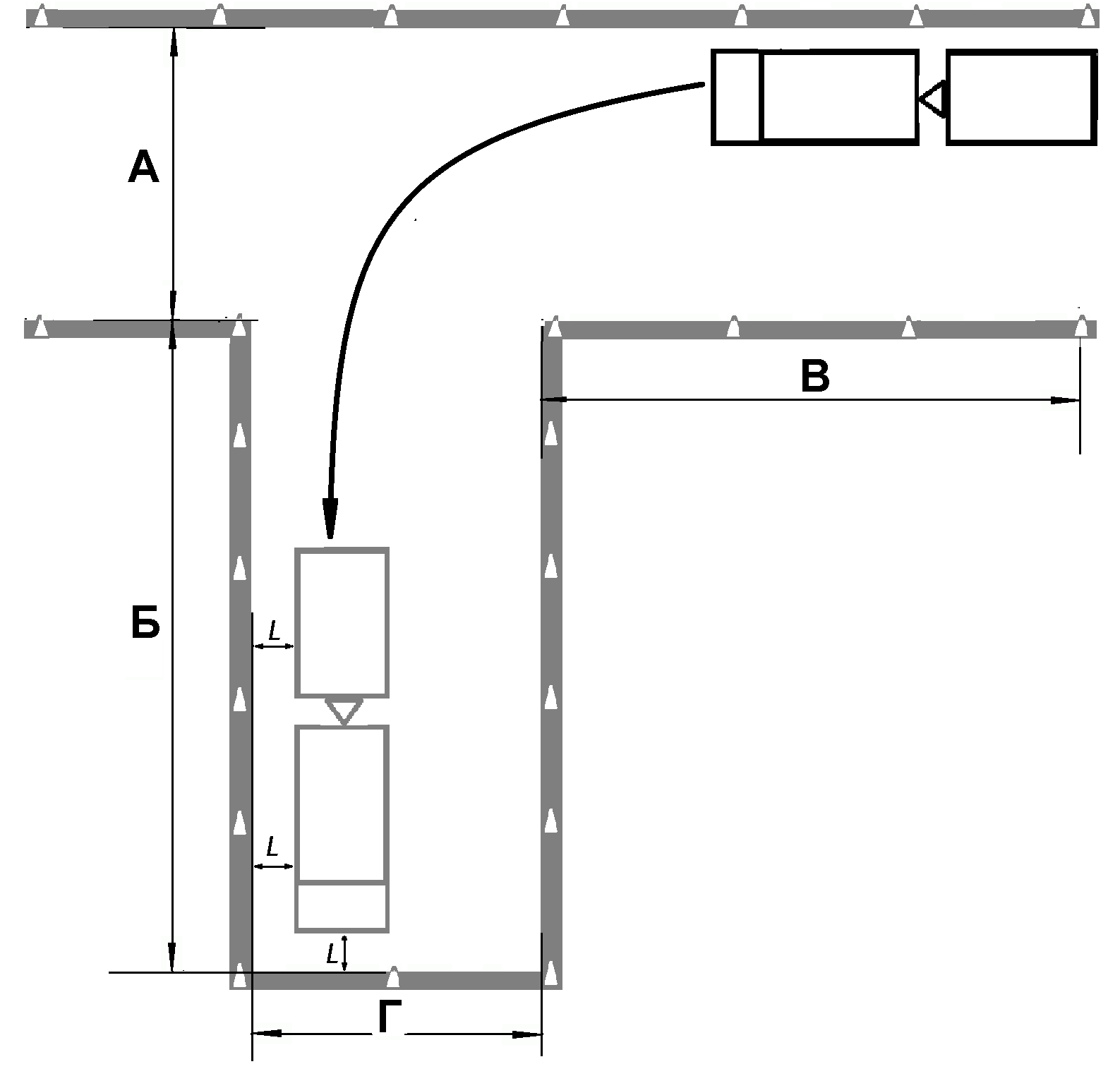 Рис.8. Схема и основные размеры Испытательное упражнение № 9 «Повороты на 90 градусов»
