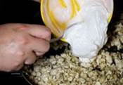 Ингредиенты: 500 г куриного филе 60 г феты 10 больших свежих шампиньонов 4 столовые ложки сметаны 1 столовая ложка муки 1/2 стакана измельченной моцареллы свежая зелень петрушки по вкусу молотый черный перец по вкусу соль по вкусу 1 столовая ложка растительного масла