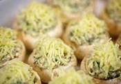 Приготовление: 1. Промойте и обсушите шампиньоны, острым ножом подрежьте и выньте ножки. Застелите форму для выпечки пергаментом и разложите в ней шляпки отверстиями вверх. 2. Мелко нарежьте куриное филе. Разогрейте сковороду с 1 столовой ложкой растительного масла на среднем огне, добавьте нарезанную курицу, жарьте около 5 минут, помешивая время от времени. 3. Пока жарится курица, мелко нарежьте ножки грибов. Добавьте нарезанные грибы в сковороду с курицей, и готовьте вместе еще 5 минут, периодически помешивая. 4. Смешайте муку со сметаной. Уменьшите огонь и влейте сметану в сковороду. Подсолите, приправьте молотым черным перцем и перемешайте. Тушите еще в течение 8-10 минут, пока смесь не загустеет, затем снимите с огня, чтобы остыла. 5. Пока смесь остывает, разогрейте духовку до 180С. 6. Натрите фету на терке и смешайте с курицей и грибами. Добавьте мелко нарезанную петрушку и перемешайте. 7. Используя 2 столовые ложки, равномерно распределите начинку между подготовленными шляпками шампиньонов. Сверху на начинку посыпьте понемногу тертой моцареллы. 8. Запекайте в духовке в течение 15-20 минут, затем дайте грибам немного остыть и подавайте.