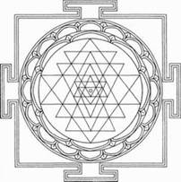 Священная Шри-янтра - это самая известная из всех янтр, что объясняется присущей ей геометрической гармонией. Она состоит из девяти пересекающихся треугольников: пяти треугольников йони, направленных вершинами вниз (Шакти), и четырёх треугольников огня, направленных вершинами вверх (Шива). Она также известна как Навайони-чакра[2]. Эта конфигурация порождает узор из сорока трёх треугольников, который символизирует богиню Трипурасундари (находящуюся в центре) в окружении своей свиты из сорока двух божеств. Треугольники образуют последовательность из пяти чакр, которые, следуя из центра наружу, последовательно размещаются в одном, восьми, десяти, десяти и четырнадцати треугольниках. Эта структура заключена в две концентрические окружности, образуемые лотосами с восемью и шестнадцатью лепестками, которые, в свою очередь, заключены в квадрат бхупура (план земли). (Продолжение на стр. 330.) Если вы хотите получить дополнительную информацию о янтрах, обращайтесь к Приложению (стр. 295). Date: 2015-09-24; view: 364; Нарушение авторских прав |