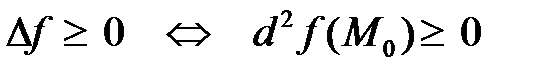 Достаточные условия существования экстремума определяются знаком приращения функции, который в свою очередь определяется знаком второго дифференциала: