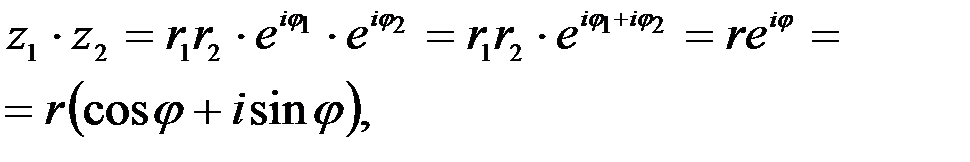 Запись комплексного числа в показательной и тригонометрической формах очень удобна для выполнения операций умножения, деления, возведения в степень и извлечения корня. Пусть заданы комплексные числа:
