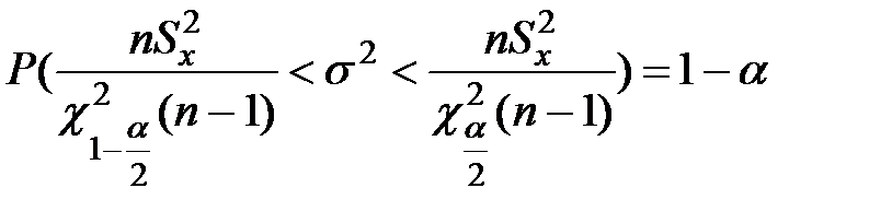 Здесь Здесь Доверительный интервал для дисперсии в том случае, если математическое ожидание неизвестно, а оценки получены по выборке, находим согласно соотношению