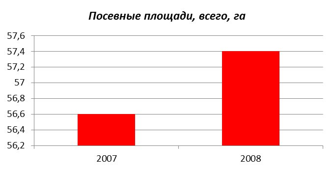 Нужно изобразить размер и структуру посевных площадей графически. 1. Изобразим общий размер посевных площадей посредством столбиковой диаграммы: