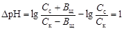 где p Kd – показатель константы диссоциации слабого основания; С с и С осн – концентрации соли и основания соответственно, моль/л. · Соли слабых кислот и слабых оснований (например, NH4CH3COO). Буферное действие обусловлено реакциями NH4+ + OH- Û NH4OH; CH3COO- + H+ Û CH3COOH. Емкостью буферного раствора В называют количество сильной кислоты или щелочи, которое требуется добавить к 1 л раствора для изменения его рН на единицу. Раствор утрачивает буферные свойства при добавлении сильной кислоты или щелочи в количестве, превышающем буферную емкость. Различают буферную емкость раствора по кислоте и по щелочи. Емкость кислого буфера по щелочи вычисляют по уравнению