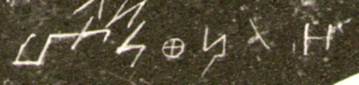 Фотография №2. Текст эпитафии гласит - «Дбг ччдм. Батдм», что на русском языке означает «Эпитафиальный текст начертил я. Я написал». Оба эти памятника относятся ко времени правления Моде кагана, т.е. к 206-178 годам до нашей эры. Около села же, Первое Иткулово Баймакского района сохранились четыре рунописьменных эпитафий и географический указатель места переправы через реку Сакмару. На географическом указателе выскоблено слово «Эдэ». Это слово имеет следующие значения «проход»; «переправа»; «брод»; «идти»; «дойти». Географический указатель показан на фотографии №3.