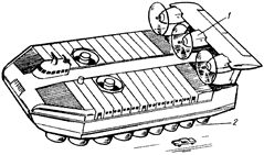 Суда на воздушной подушке (рисунок 9.7) начали получать распространение лишь с 60-х годов и пока на отдельных небольших линиях (реках) и при перевозках через морские проливы. Идея использования воздушной подушки известна давно. В СНГ создано несколько моделей судов на воздушной подушке. Среди них "Радуга" - небольшой катер для движения со скоростью 100 км/ч, более крупное – "Горьковчанин" на 48 пассажирских мест и другие. Сотни таких судов построены во многих странах мира. Самые крупные работают в качестве автопассажирских паромов через пролив Ла-Манш. Одно из таких судов водоизмещением 180 т и грузоподъем-