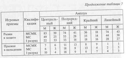 и крайний. Соревновательная модель игроков этих амплуа имеет свои особенности (табл. 7).