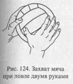 В процессе игры в нападении гандболист применяет определенные приемы (рис. 122). Участие в игре обязывает спортсмена быть в постоянной готовности к перемещению, к принятию мяча. Эта готовность отражается в позе игрока, которую принято называть стойкой. Основная стойка гандболиста - это положение на слегка согнутых ногах, руки согнуты в локтевых суставах под прямым углом для ловли мяча, спина прямая, плечи расслаблены. Этой стойкой пользуются игроки, разыгрывая мяч. Стойка вратаря отличается тем, что руки вытянуты в сторону мяча, спина круглая, ноги значительно согнуты. Перемещения. Для перемещения по площадке гандболист использует ходьбу, бег, прыжки. С помощью этих приемов игрок освобождается от опеки защитников, выбирает место для взаимодействия с партнерами. Ходьба обычная и приставными шагами применяется гандболистом для смены позиции. Передвигаются игроки спиной, лицом и боком вперед.